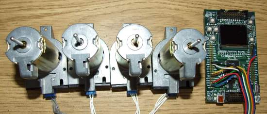 Enkoder obrotowy wykorzystywany jest do pomiaru aktualnego położenia wału (zwykle silnika elektrycznego), informacja ta może być wykorzystywana do precyzyjnego ustawiania wału w zadanej pozycji lub/i pomiaru jego prędkości obrotowej. Mikrokontroler LM3S2965 wyposażony został w dwa hardwarowe dekodery sygnałów z dwóch enkoderów, co w zupełności wystarcza np. gdy chcemy zbudować za jego pomocą sterownik silnika BLDC. W moim przypadku uC ma posłużyć jako sterownik czterech silników DC. W związku z czym obsługę pozostałych dwóch enkoderów musiałem zrealizować softwarowo. Ponieważ docelowo enkodery będą niskiej rozdzielczości (100 pozycji na obrót), skorzystałem z funkcji uC która pozwala na wywołanie przerwania na wejściu przy wykryciu zbocza narastającego.