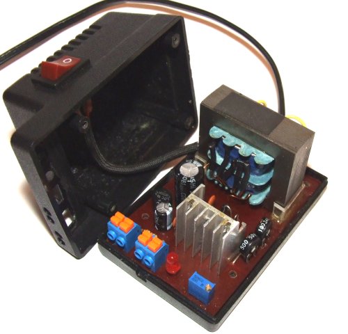 Ideą było zachowanie istniejącej obudowy oraz transformatora. Układ regulacji zasilania to typowa aplikacja układu LM317, dodatkowo poza potencjometrem do nastawiania wartości napięcia w układzie znajdują sie dwa dodatkowe potencjometry do precyzyjnej regulacji zakresu który wynosi od 1,5-13v.
